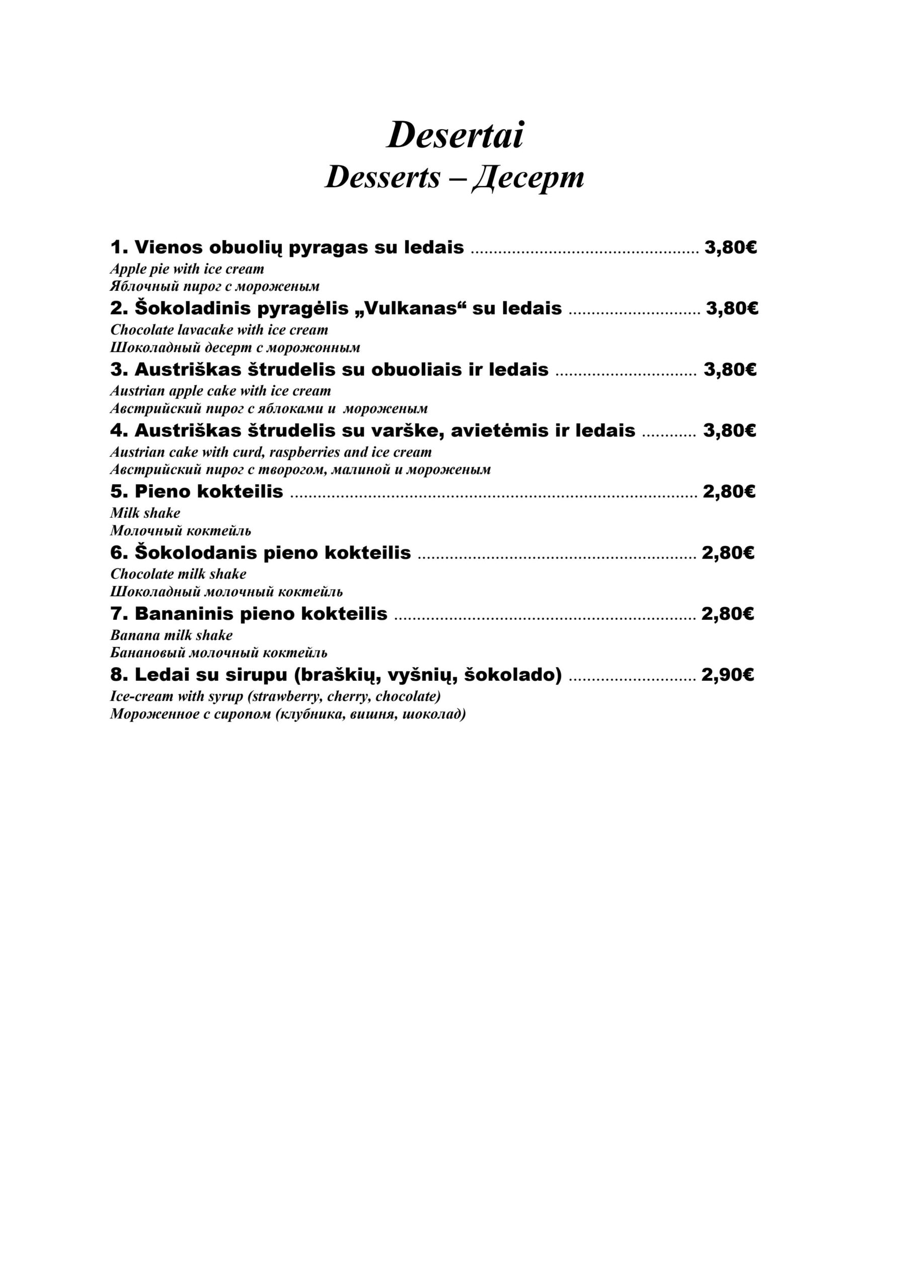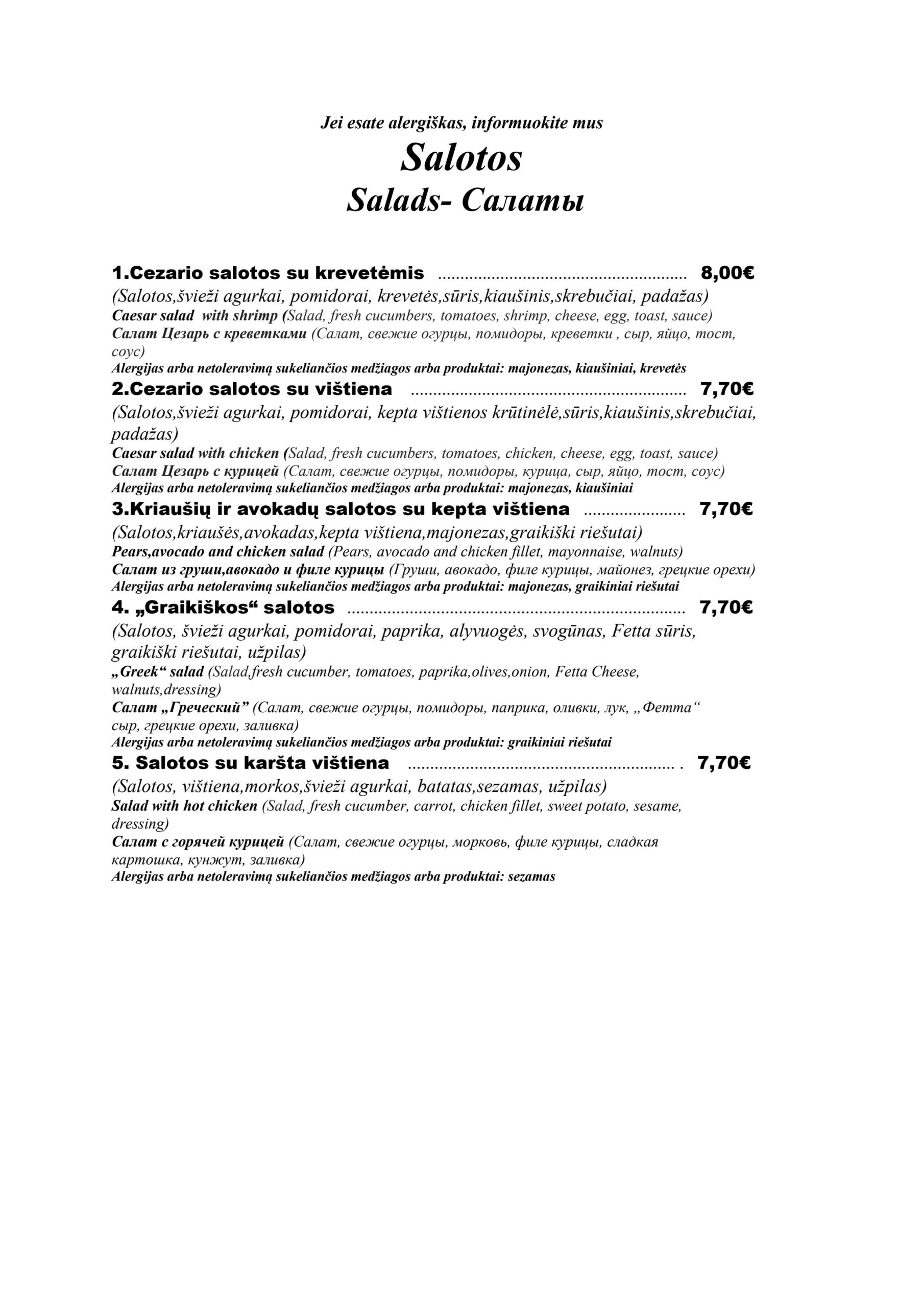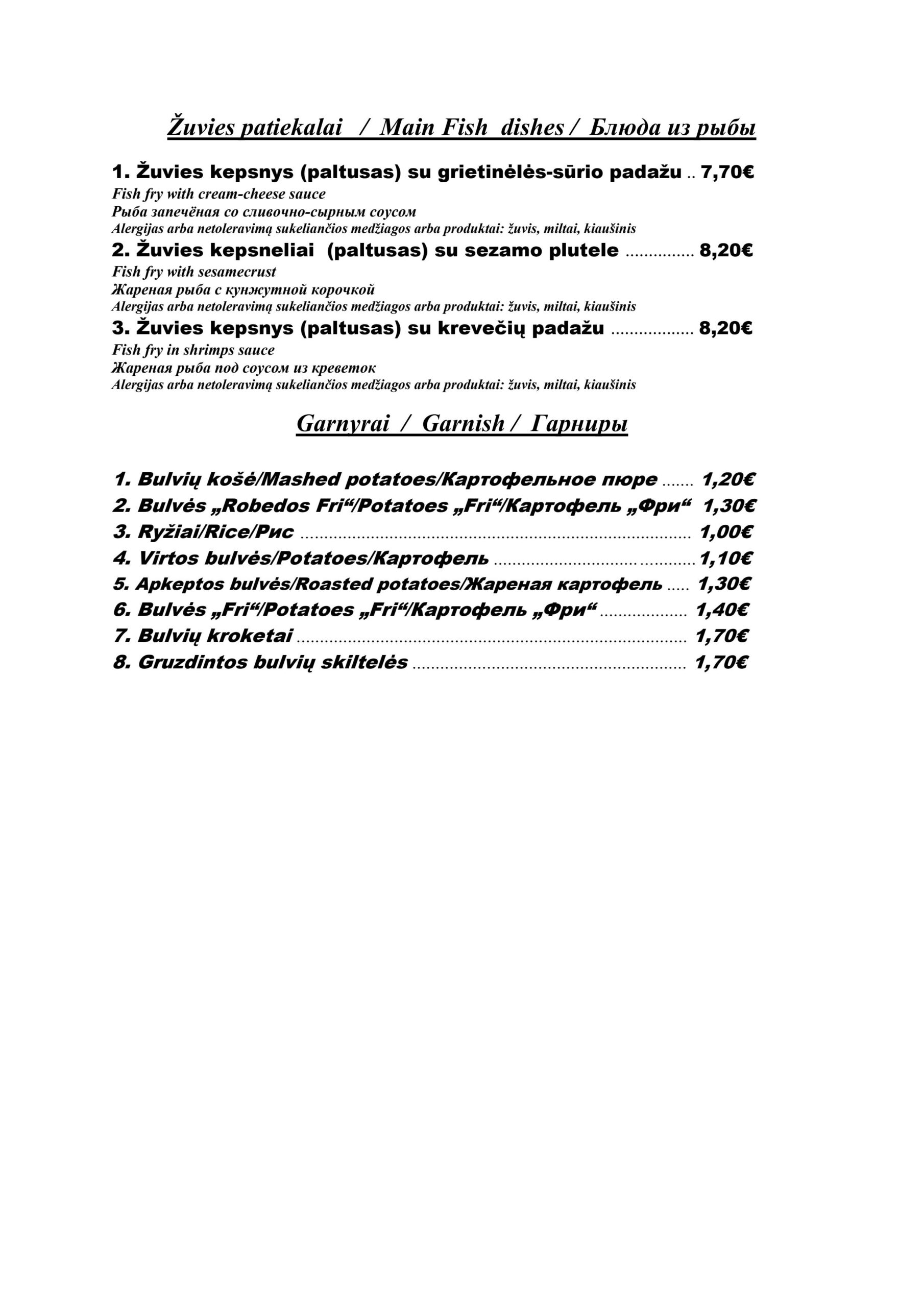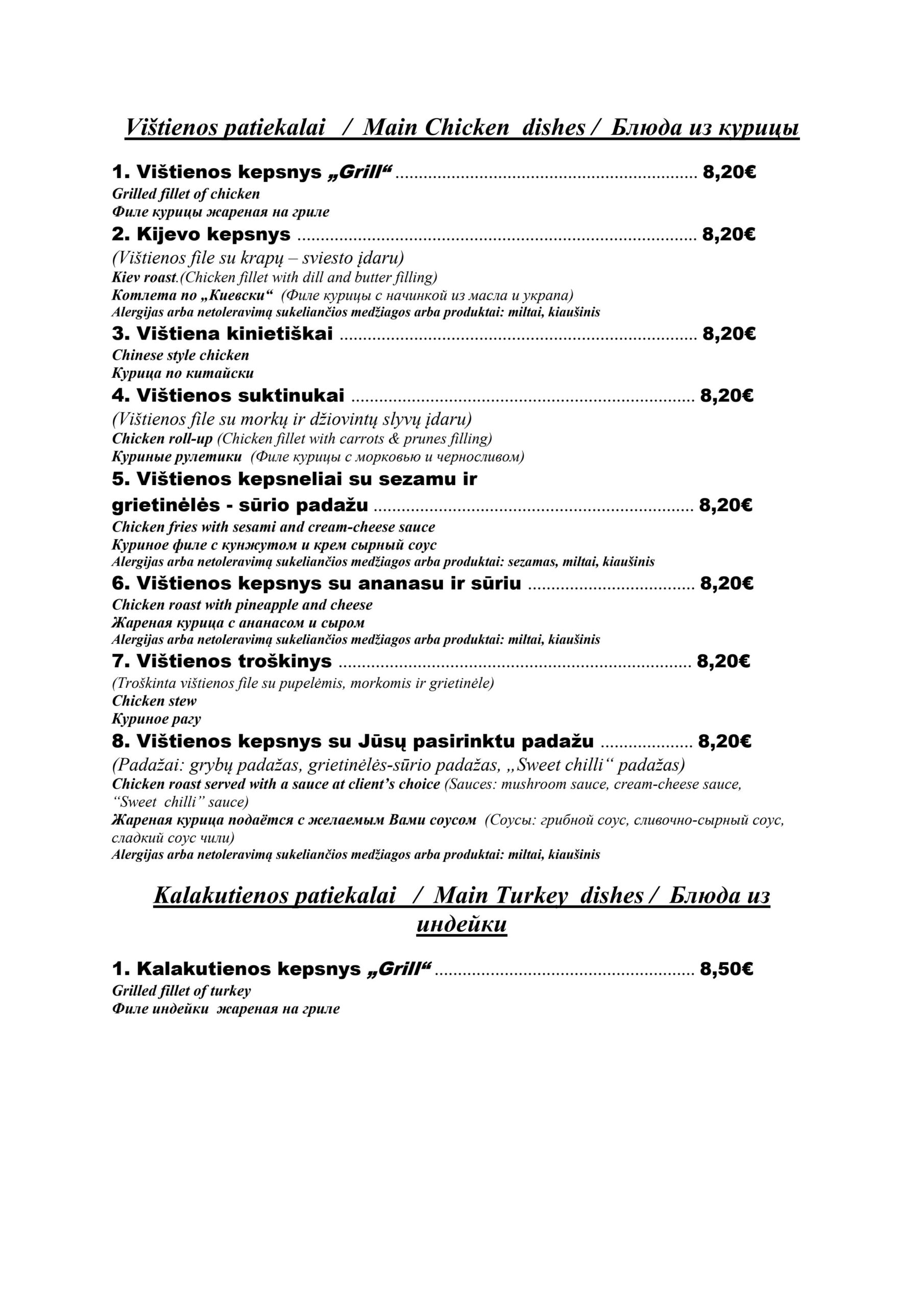 - Kotletai 360€ (pusė porcijos 240€)