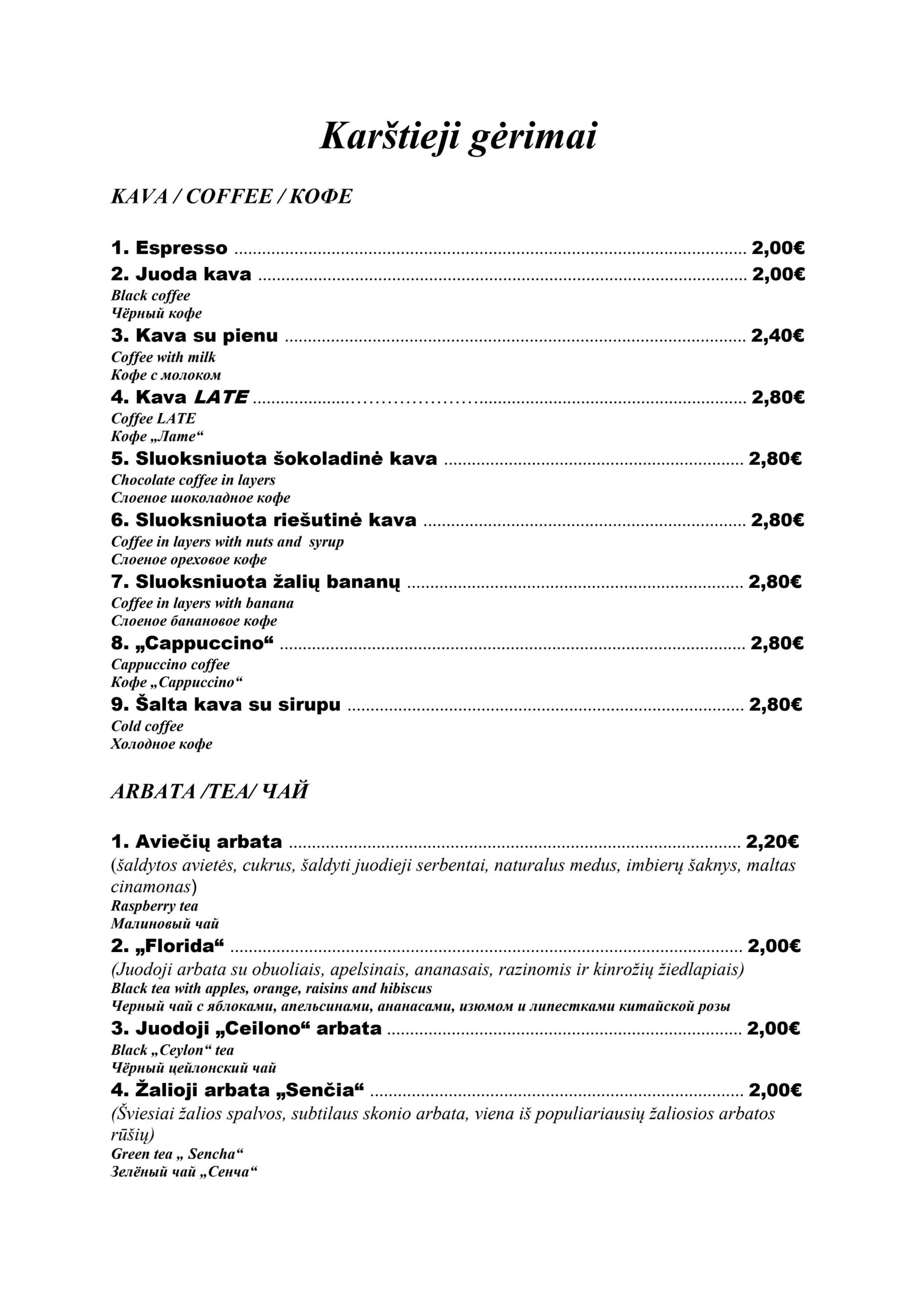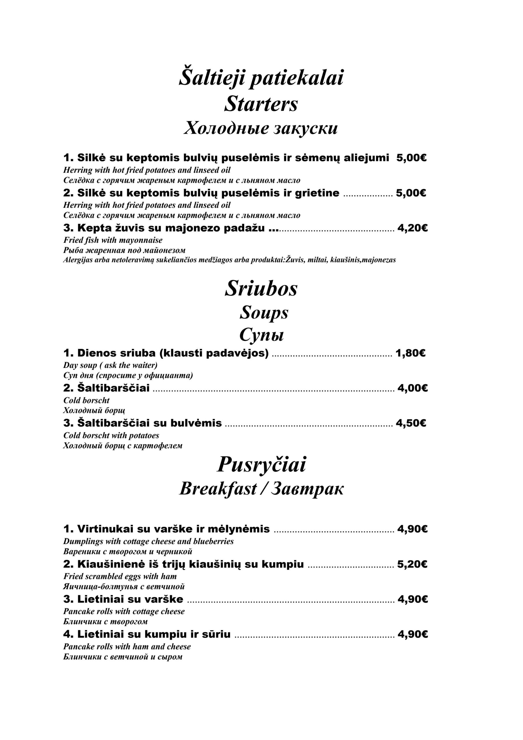 - Dienos sriuba 180€ (pusė porcijos 150€)