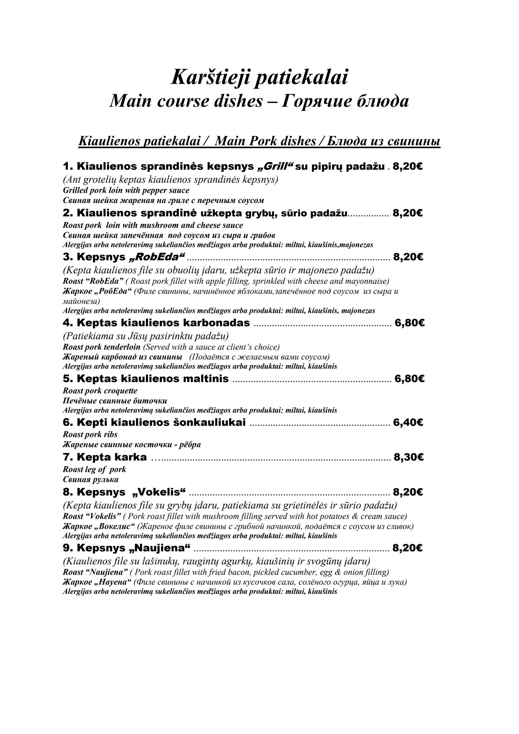 - Šonkauliukai 640€ (pusė porcijos 400€)
