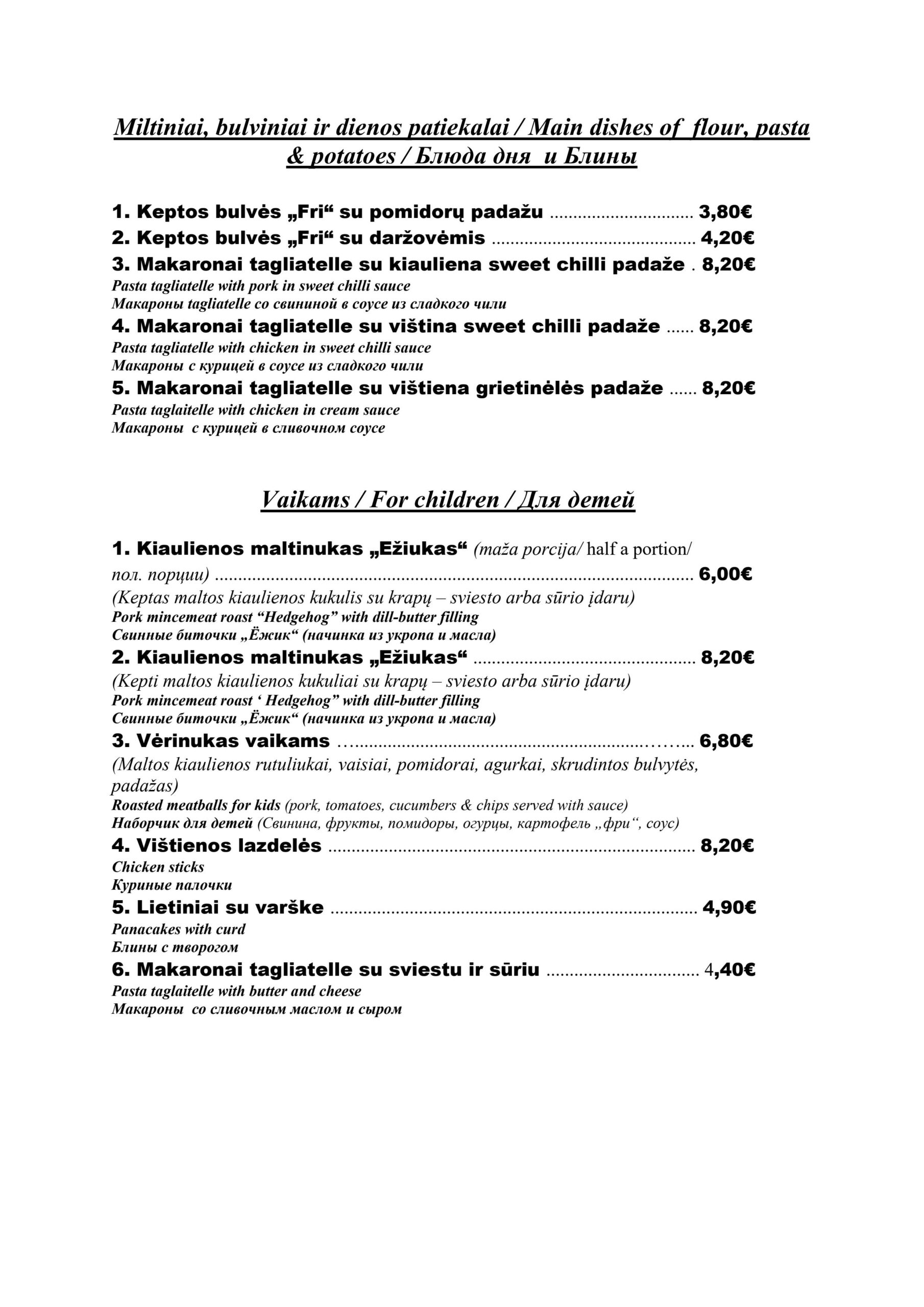 - Bulvių plokštainis 440€ (pusė porcijos 240€)